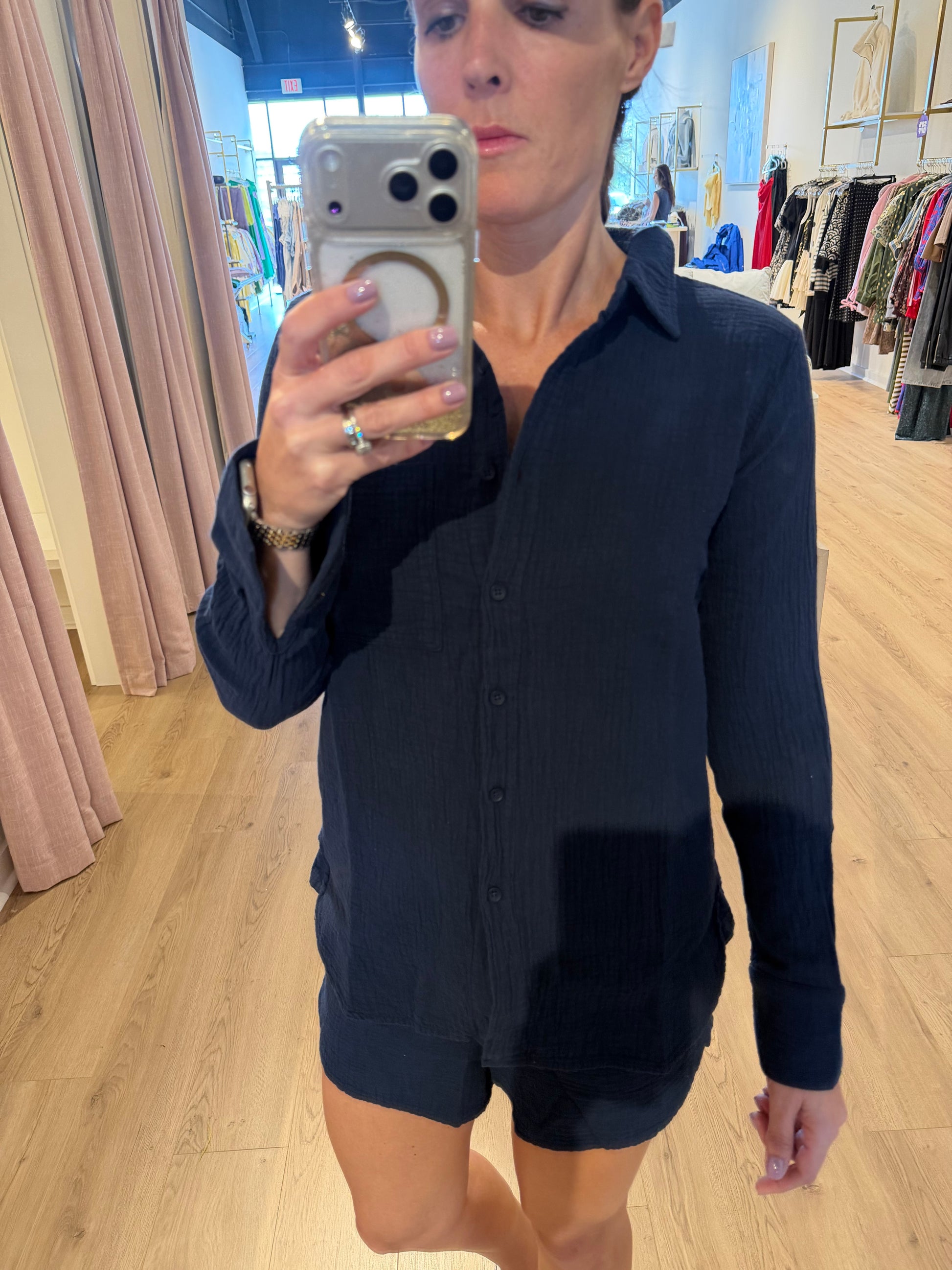 Bobi gauze long sleeve button down. Available to purchase with matching short for a set look
