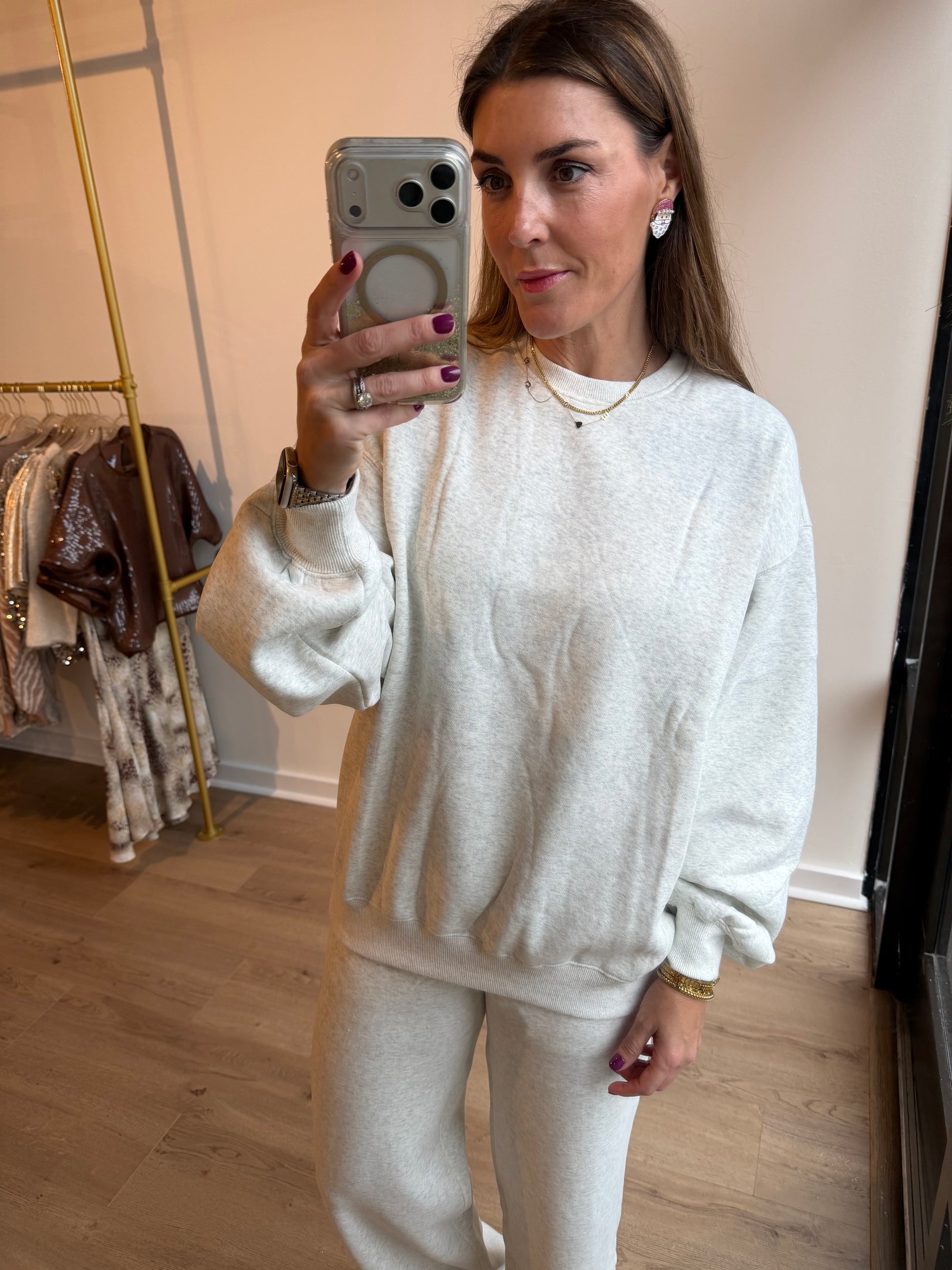 Lightweight fleece lined wide leg pant set