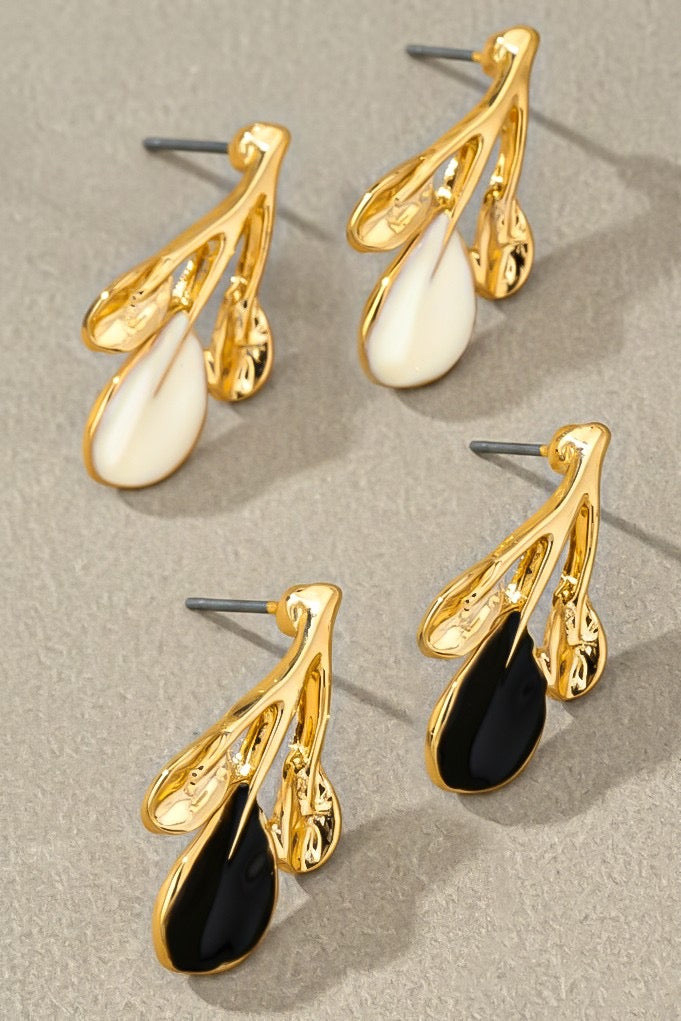 Small enamel leaf drop earrings