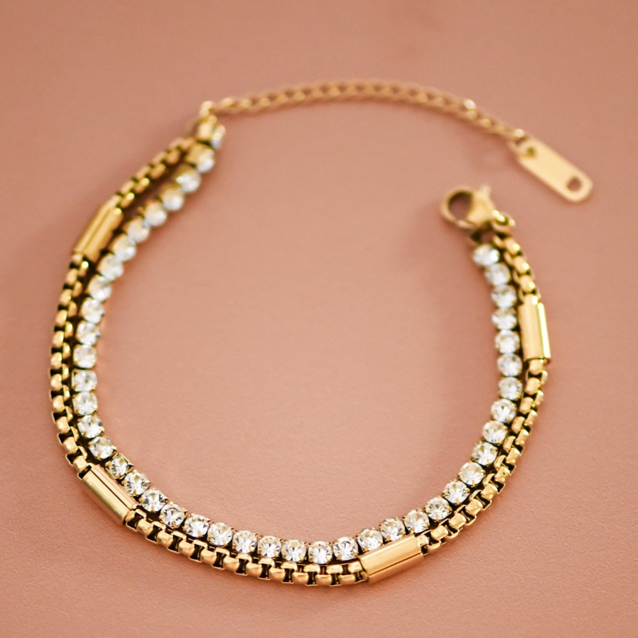 18K gold plated stainless steel chain link bracelet. 8" long including the extender. The bracelet is hypoallergenic, waterproof, fade-resistant, and tarnish-free. Perfect for everyday wear or special occasions.