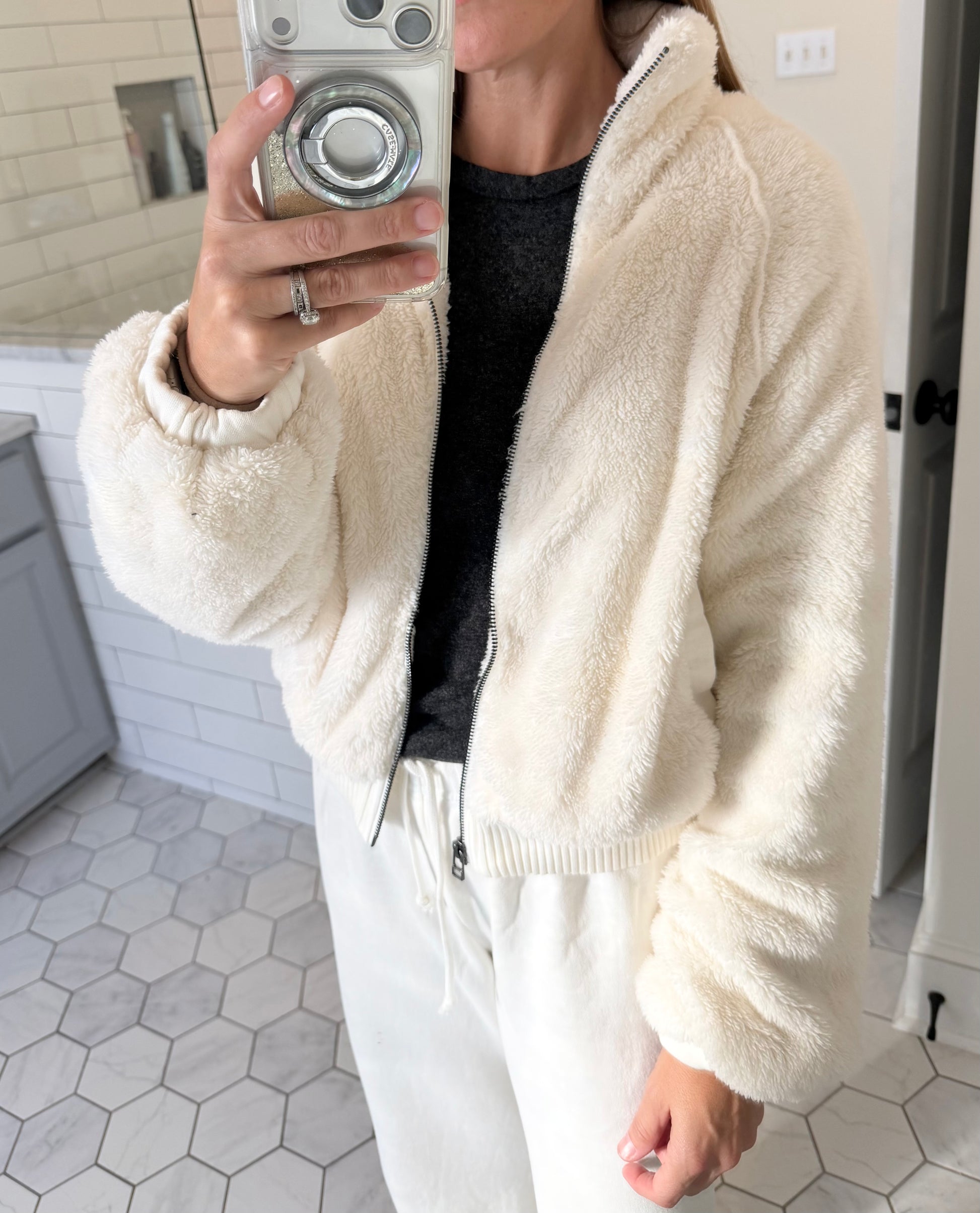 Super soft and fluffy zip up bomber style jacket by Bobi Los Angeles with ribbed details